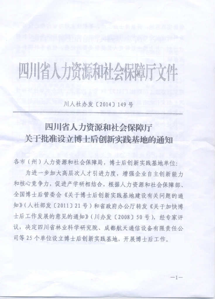 公司于2014年6月30日獲得四川省人力資源和社會保障廳批準的博士后創(chuàng)新實踐基地。